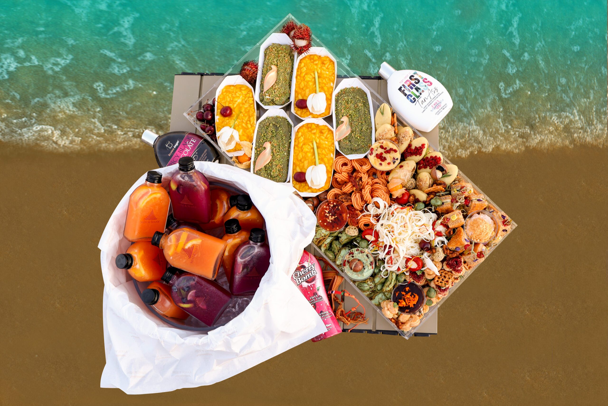 salty : Breadwich-Cheese Croissant-Triangle Cheese-Moroccan Red-Pesto Taco Sweet: Pistachio Pudding-Mango Pudding juices : florence - celeste fusion 14 pcs