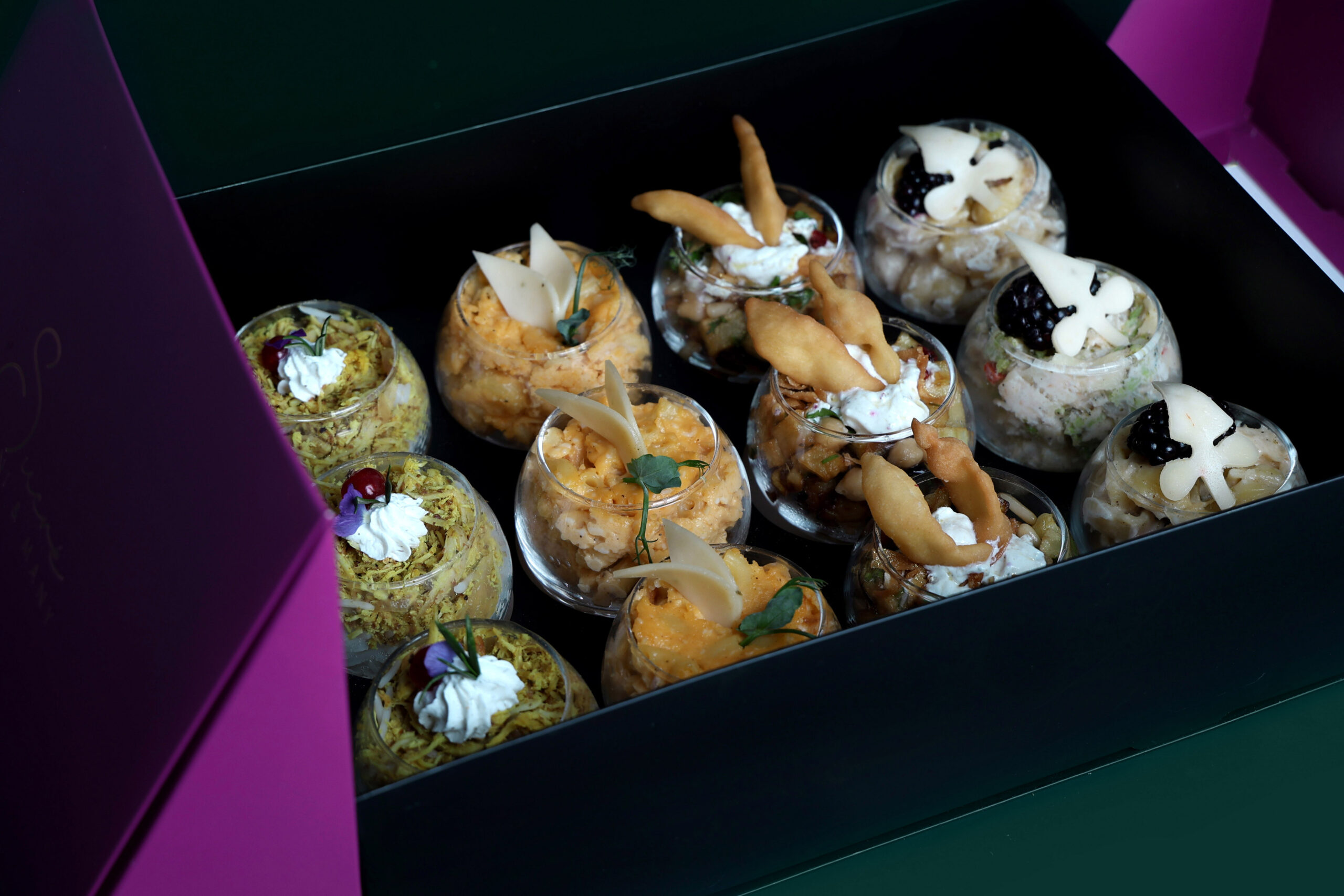pasta : cheese pasta - broccoli pasta Fatta : chicken - eggplant 12 glasses